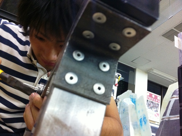 応用化学学科の後藤君も金属加工をガンガンやっています.