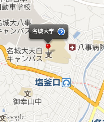 名古屋駅から地下鉄を乗り継いで塩釜口駅で降りて、徒歩10分位のところに名城大学がありました。