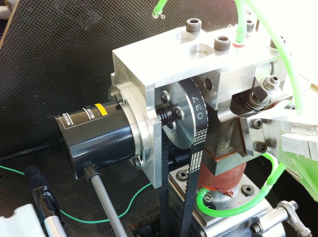 今年度から,ロータリーエンコーダをカムシャフトの延長軸上にマウントし読み取っています.