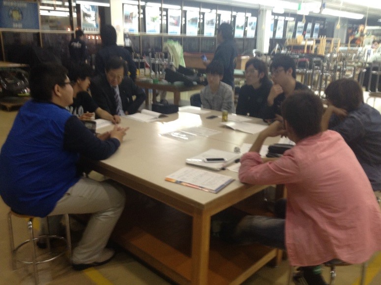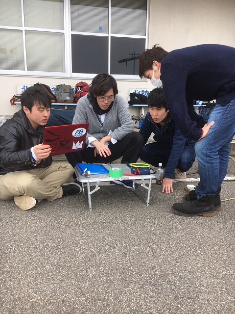 一通り積み込み作業が終わってから,大会期間中の動きの確認などを行うため,ミーティングを行いました.