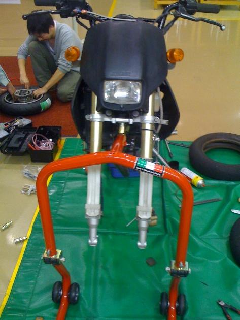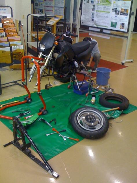 パンク修理エリアでミニバイクのタイヤ交換をしました。(笑)