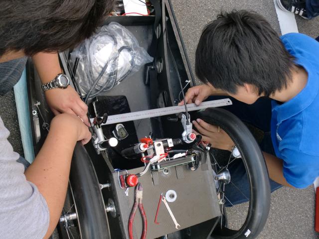 このステアリングの形状は1年生の辻田さんが試行錯誤して作ったものです。