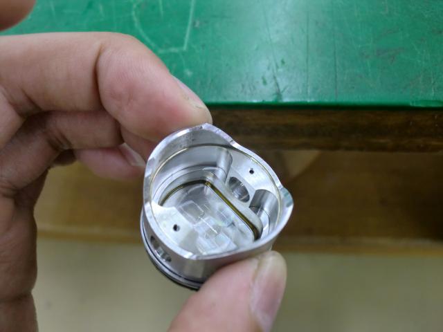 これはピストンの裏側です。ピストンピンの通るところに