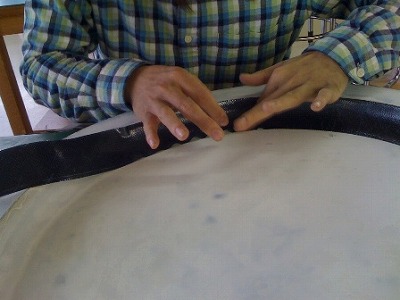 曲面の所はドライヤーなどを使って伸ばしながら張り込んでいきます。
