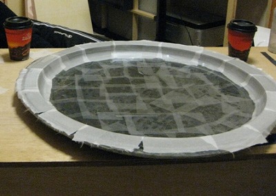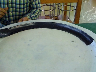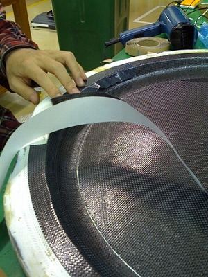 そして平面の部分には大きく切り出したカーボンプリプレグを突き当てで張り込んでいきます。