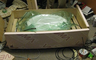 最後に型全体をブリーザーで覆い、バッキングフィルムの中に詰めます。