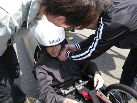 午前中の練習は秋田ソーラースポーツラインのヘアピンカーブを想定しての急旋回を練習しました。
