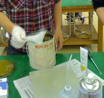 このまま型として使えないので、パテを使って修復します。