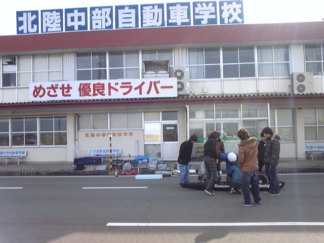シャシでは、北陸中部自動車学校で試走を行った際にナックルを取り付けるピロを支えているフランジ?がもげてしまいました。
