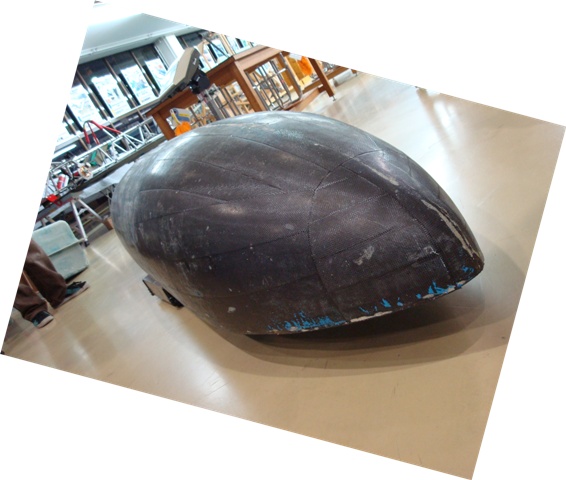 1プライなので外が見えるくらい薄くて軽いです。質量は今年のWEMで使用したウエットのカウルの50%減といった感じでしょうか。