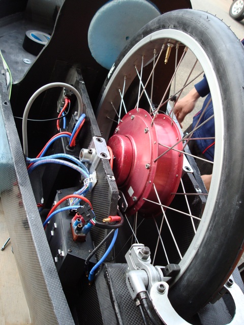 スタート直前にカウルをつける際、固定用の金具が外れてしまうというトラブルがありましたが、走行中にドライバーの貝瀬氏がカウルを頑張って足で押さえていてくれたため、カウルも耐えてくれたようです。