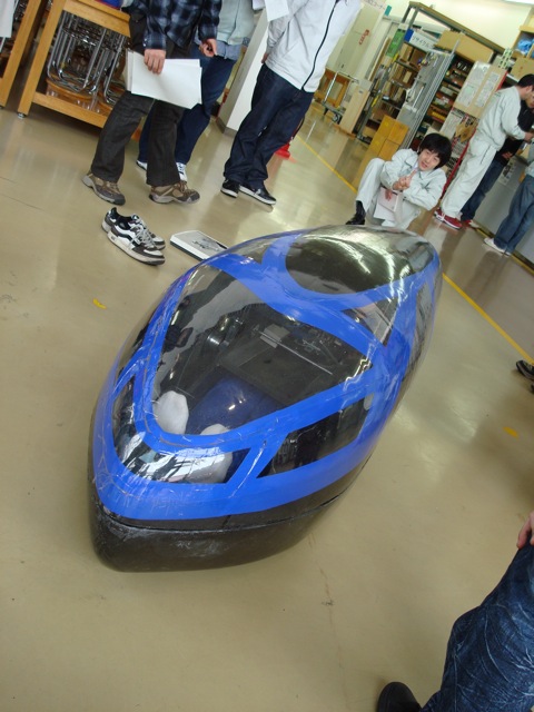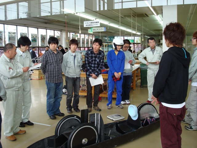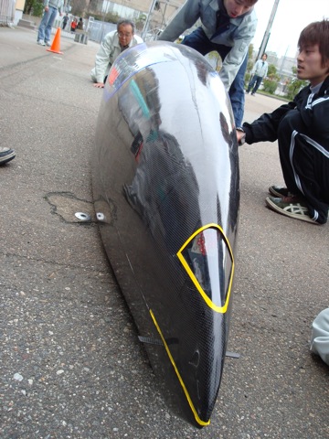 ここで前エコランPJ運営責任者の吉江技師から物言いが。。ドライバーの視界に付いてです。ドライバーが実際に乗って確かめたところ、問題ないと納得していただけました。