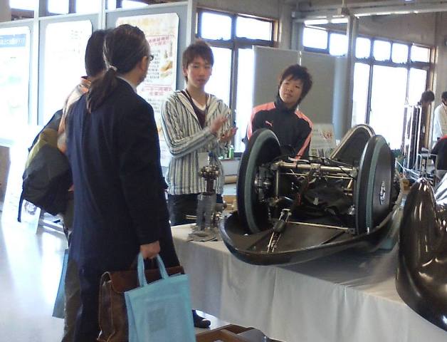 オリジナルエンジンを搭載したG.E.06は、内燃機関の研究を行っている加藤聰研究室のブースでの展示となりました。