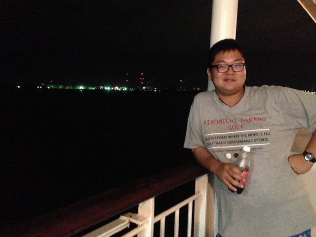 新潟港をバックに石井先輩,かなりリラックスしています.