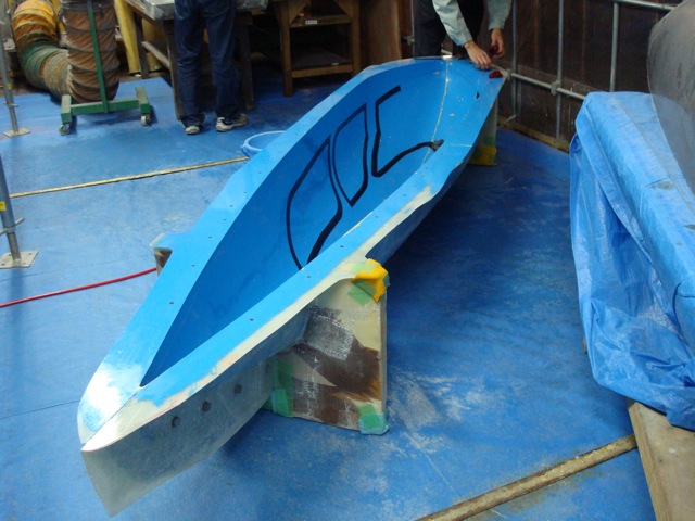 アッパーカウルはどうやら作り直しのようです。もったいないですが、補修の手間や空気抵抗のことを考えると仕方ないようです。メス型は2度目の積層に備えて、表面をパテで整えています。